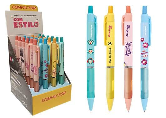 Com seus corpos coloridos, as Lapiseiras Ginasium oferecm uma experiência divertida e estilosa na hora de escrever e desenhar. Cada lapiseira é cuidadosamente projetada com desenhos e textos impressos em seu corpo, criando uma sintonia única com quem a utiliza.