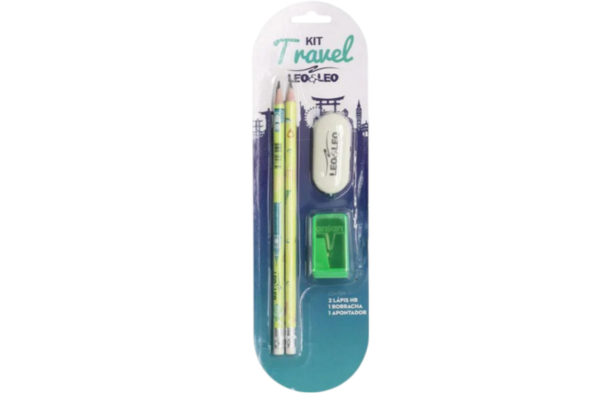 O Kit Lápis HB Travel da Leoeleo é perfeito para os amantes de viagens e para adicionar um toque de aventura à sua papelaria. Este kit inclui 2 lápis HB Travel, um apontador e uma borracha, embalados em uma caixa com 24 blisters individuais, oferecendo praticidade e organização para suas atividades de escrita.