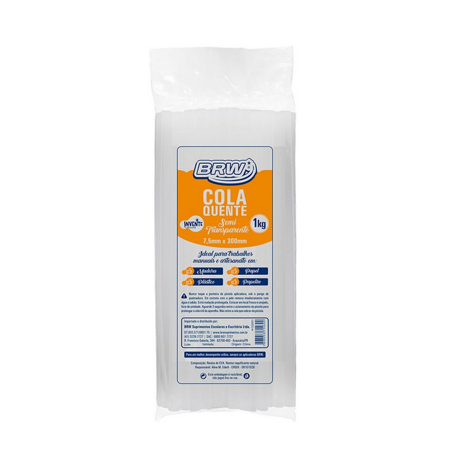 BASTÃO DE COLA QUENTE SEMI TRANSPARENTE - FINO - 7,5X300MM - PCT C/ 1KG BRW