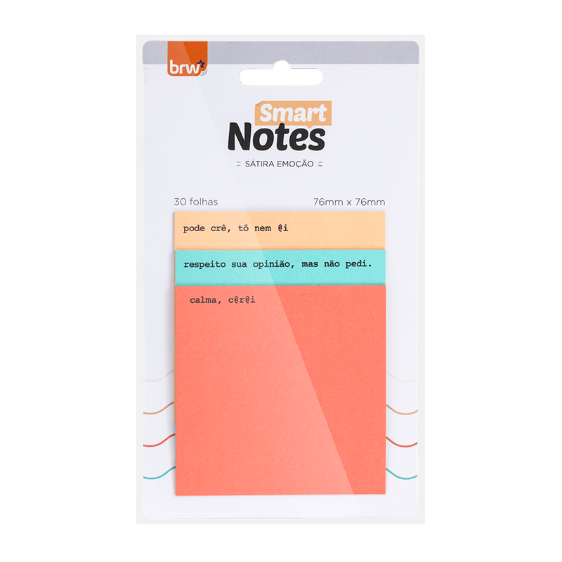 3 blocos com 10 folhas cada. Frases sarcásticas. 30 folhas com gramatura de 75 g/m². Os adesivos são 100% recicláveis, reposicionáveis e não deixam resíduos de cola ao serem retirados.
