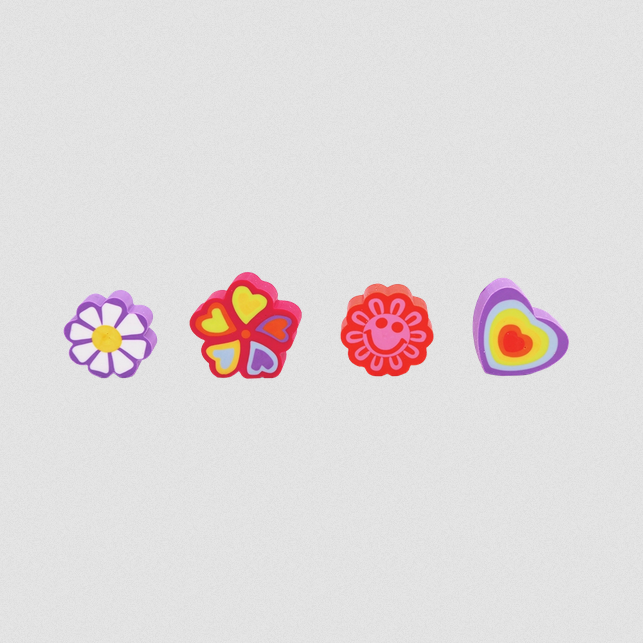 A dose de felicidade do seu dia! Inspirada na tendência dopamine fashion, a coleção Dopamina conta com cores vibrantes, estampas divertidas e muita abstração! A borracha ponteira Dopamina traz a praticidade da borracha que encaixa no lápis e a dose de cor perfeita para seu dia! São 4 modelos divertidos de borrachas, com flores, smiles e corações, enviados conforme a disponibilidade em estoque!