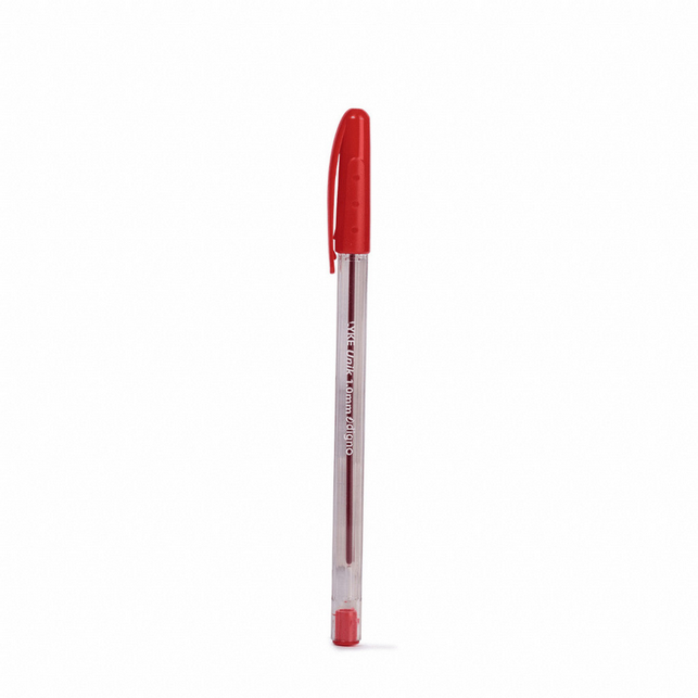 A caneta esferográfica Unik LYKE, na cor vermelha, corpo sextavado, escrita em alta precisão e ponta hiper macia.