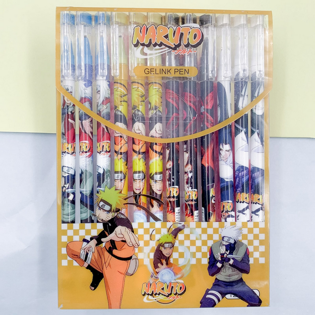 Kit com 12 Canetas Estampadas no modelo NARUTO. As canetas vêm em blister super fofo com ilustrações fofinhas da NARUTO. Possui cor de escrita preta e são apagáveis. Apagam com o movimento de fricção com a borrachinha da ponta.