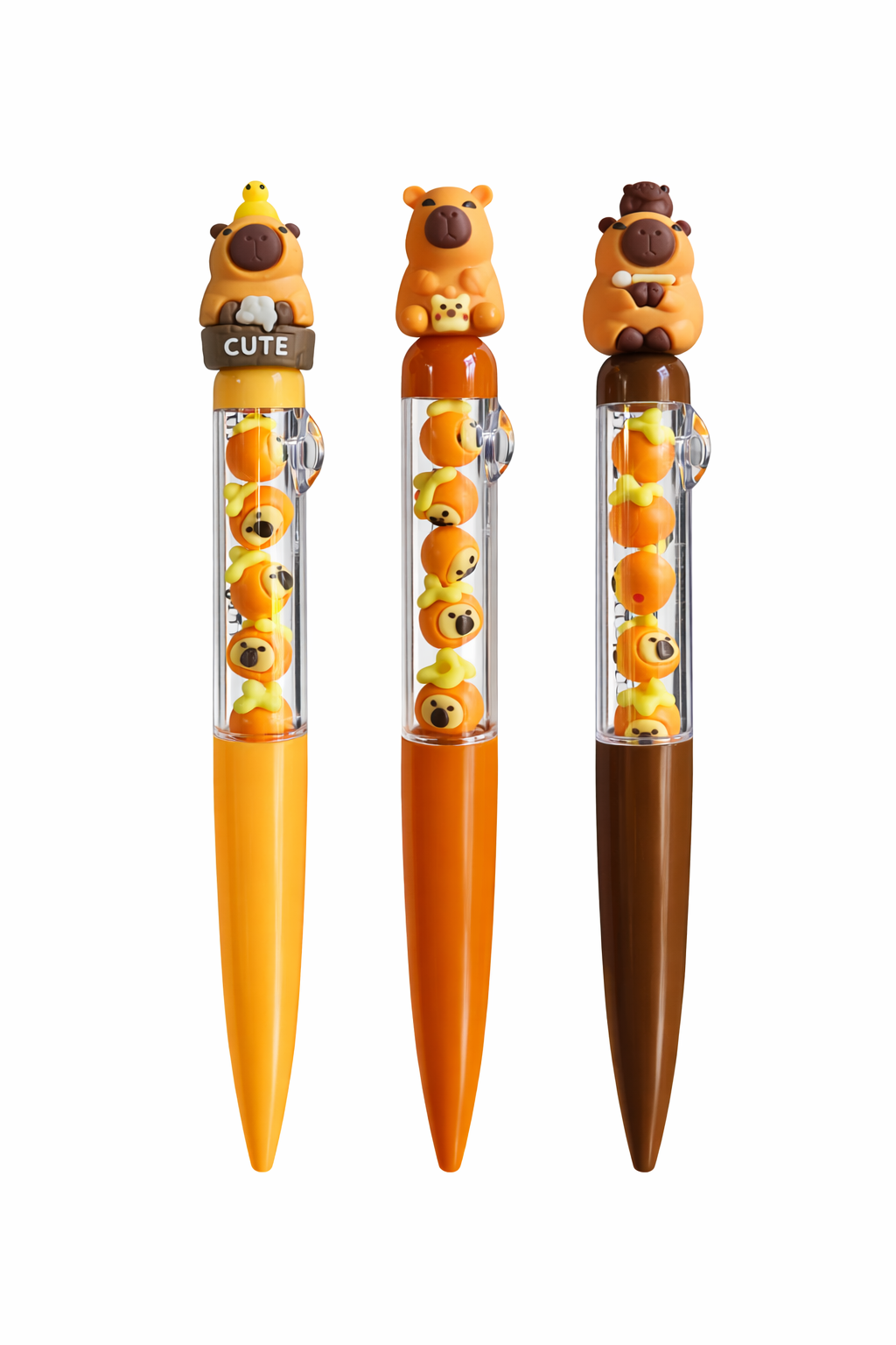 A caneta capivara é perfeita para quem ama itens criativos e personalizados. Diferente das canetas comuns, ela vem com miçangas dentro que podem ser usadas para montar uma pulseira do seu jeito.