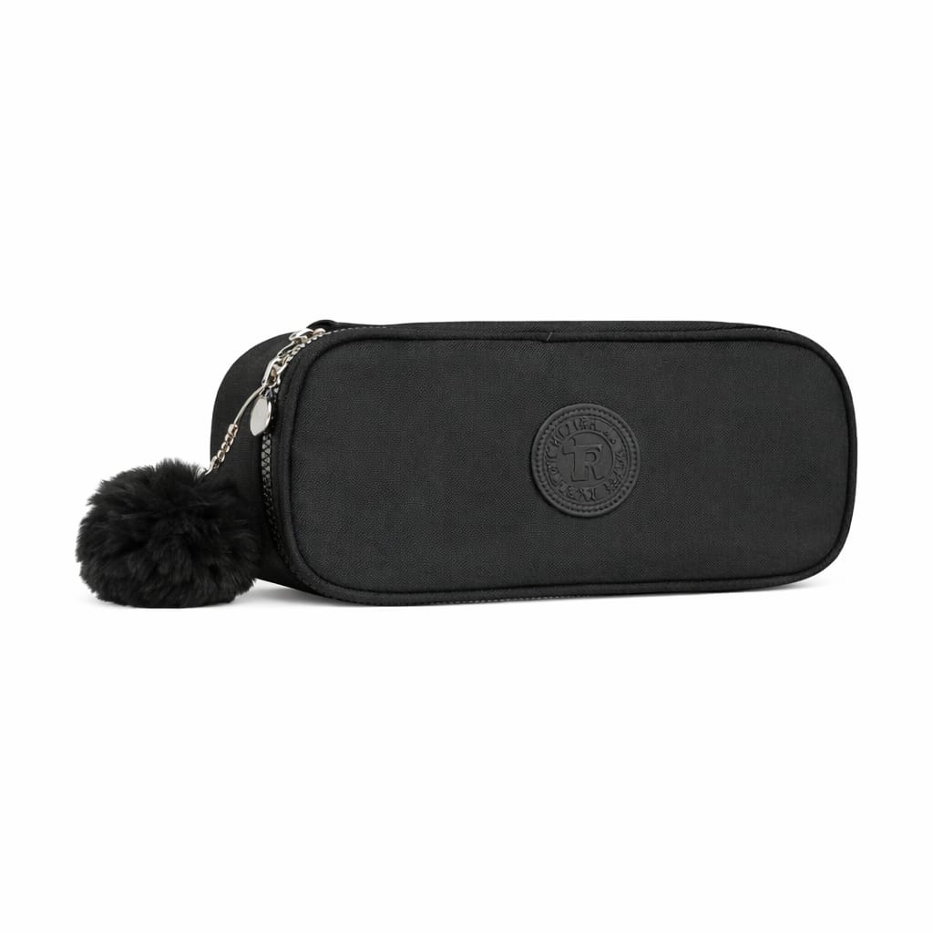 ESTOJO PRETO C/ 1 DIVISORIA COM POMPOM