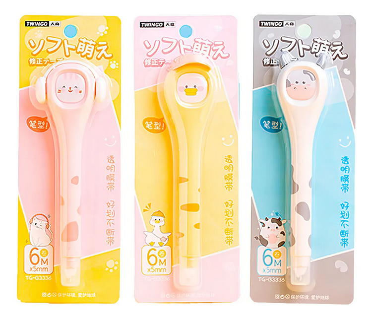 A Fita Corretiva no formato de caneta com desenhos de animais é perfeita para correções sem sujeira. Com 6m de fita e um corpo em cores adoráveis, a secagem é muito rápida, permitindo que você continue escrevendo imediatamente. É ideal para uso doméstico, escolar e de escritório.