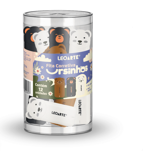 Descubra a maneira mais adorável de corrigir pequenos erros com a A Fita Corretiva 5mx5mm Formato Ursinhos - Pote com 12 unidades. Além de um material prático para o dia a dia, ela é um lindo acessório que cabe no seu estojo.