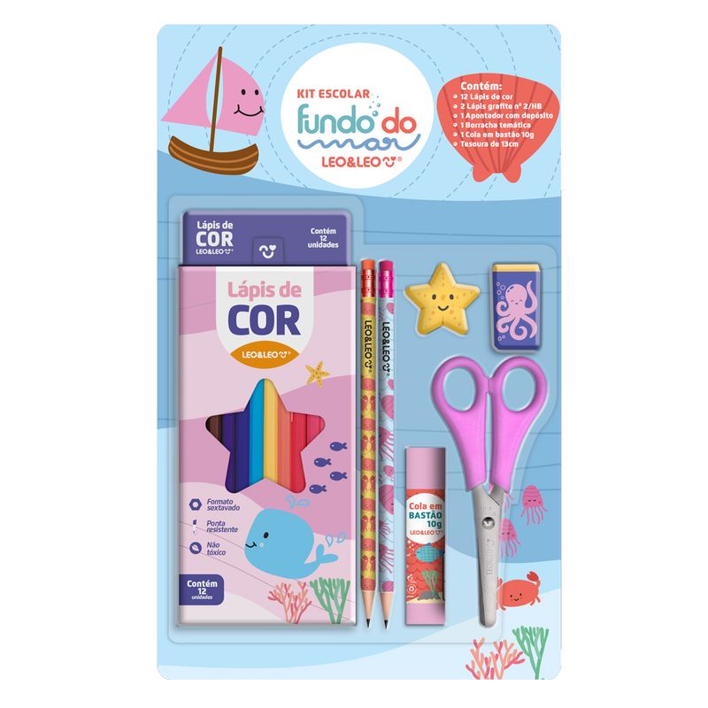 KIT LAPIS DE COR 12 CORES FUNDO DO MAR LEO E LEO