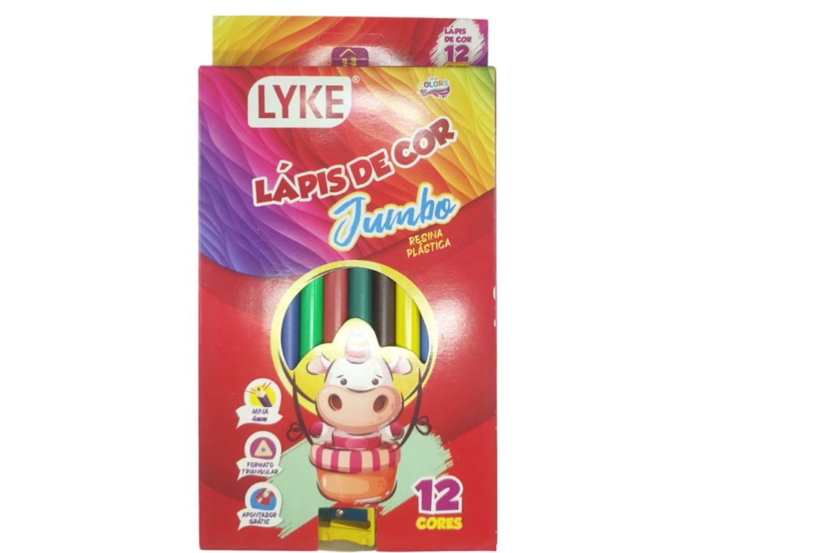 O lápis de cor LYKE jumbo com 12 cores é fabricado em resina plástica, contém corpo confortável e pontas resistentes que não quebram facilmente. É ideal para ser usado em projetos artísticos e por estudantes de várias idades.