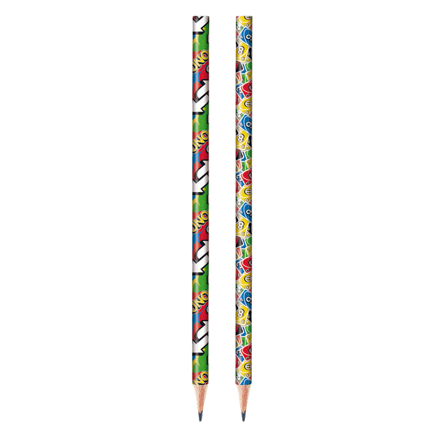 O divertido e colorido jogo de cartas chegou inspirando a Tris. O Lápis Preto Uno possui corpo redondo, traço HB com estampas divertidas
