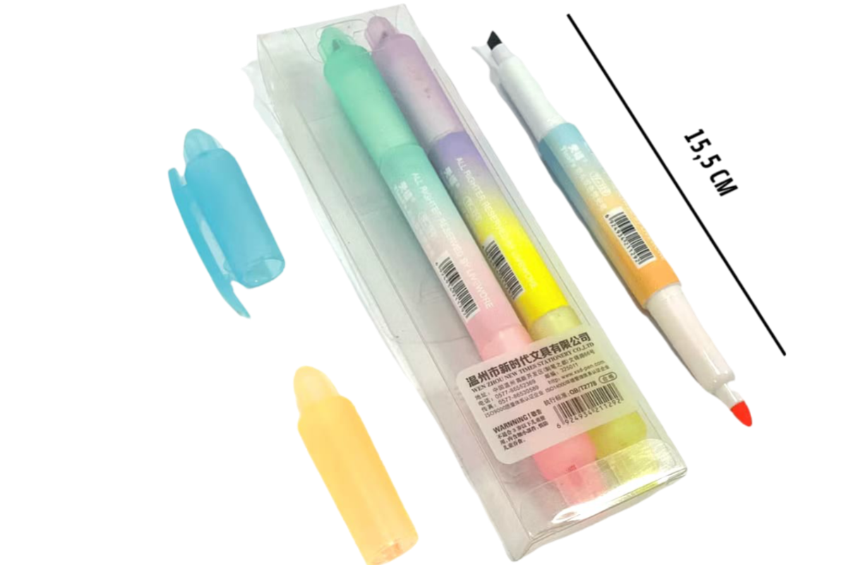 Marca texto 2x1 3 canetas 6 cores