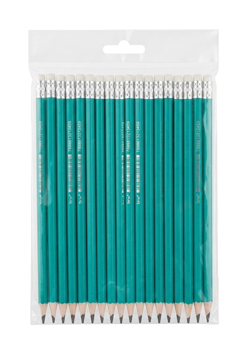 LAPIS HB VERDE DE RESINA PLÁSTICA SEXTAVADO COM BORRACHA KIT C/ 36 UNIDADES BRW