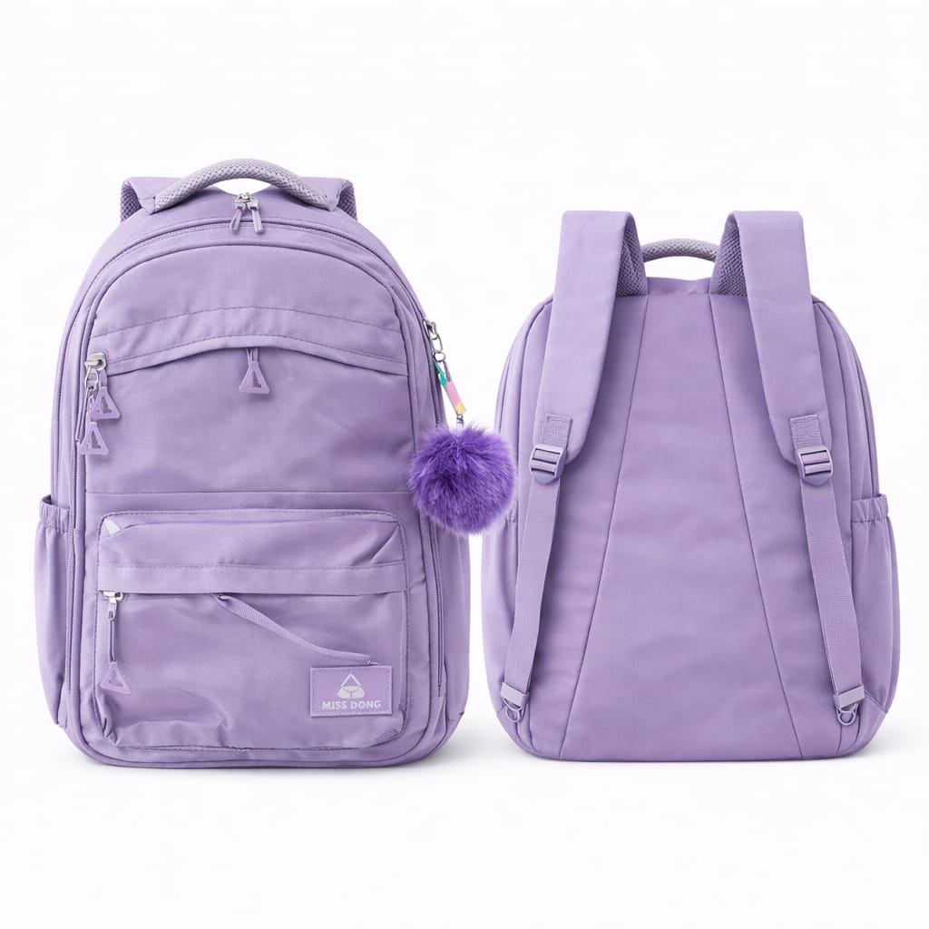 MOCHILA MISS DONG LILAS COM POMPOM