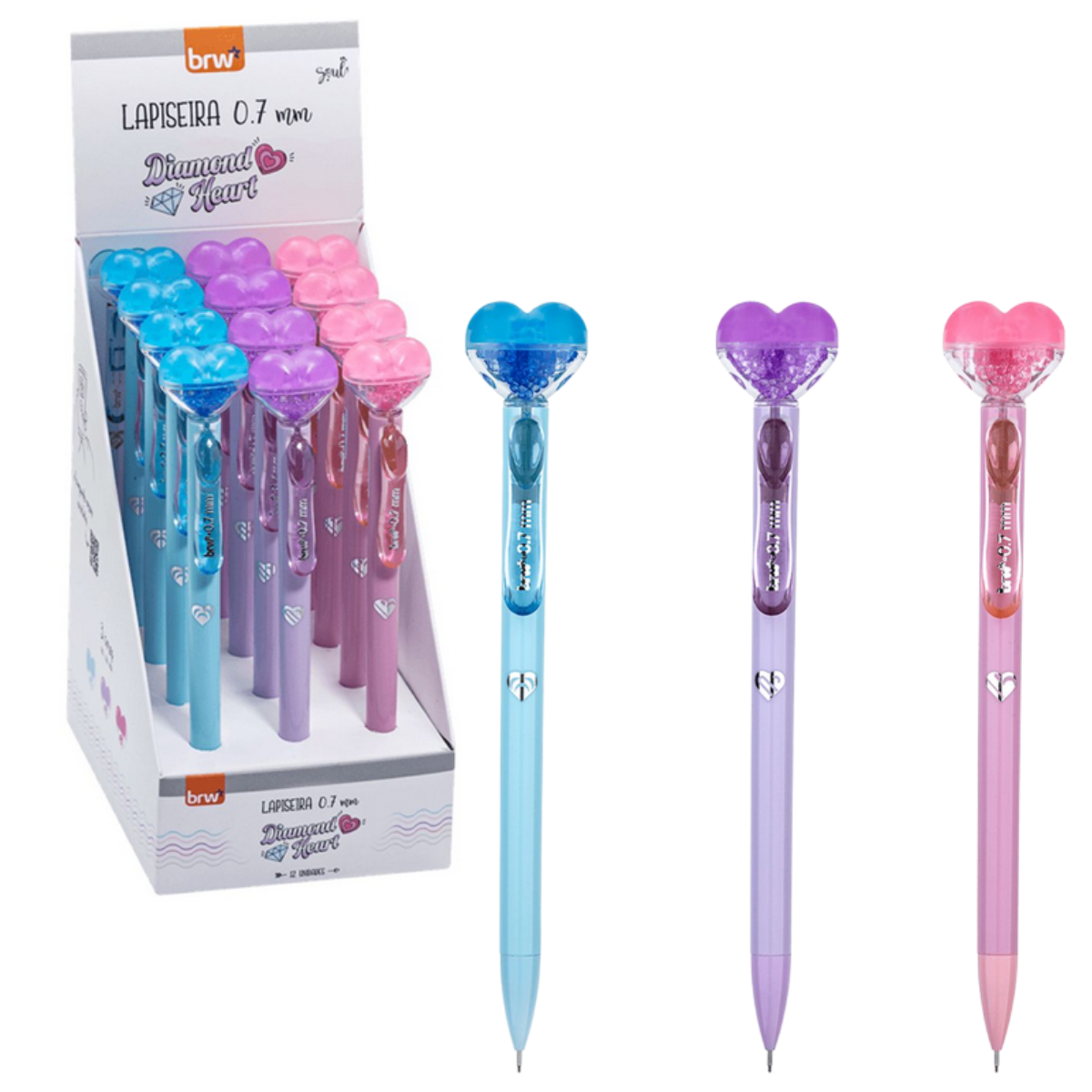 A Lapiseira Plástica Diamond Heart 0.7mm da BRW é delicada, charmosa e perfeita para quem ama papelaria cheia de detalhes especiais. Seu design exclusivo conta com um coração decorativo no topo, que traz um toque romântico e criativo para o seu material escolar ou de escritório.